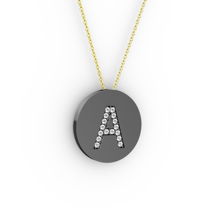 Pırlanta 925 ayar siyah rodyum kaplama gümüş kolye (0.1408 karat, 40 cm altın rolo zincir)