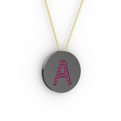 Rodolit garnet 925 ayar siyah rodyum kaplama gümüş kolye (40 cm altın rolo zincir)