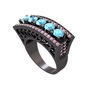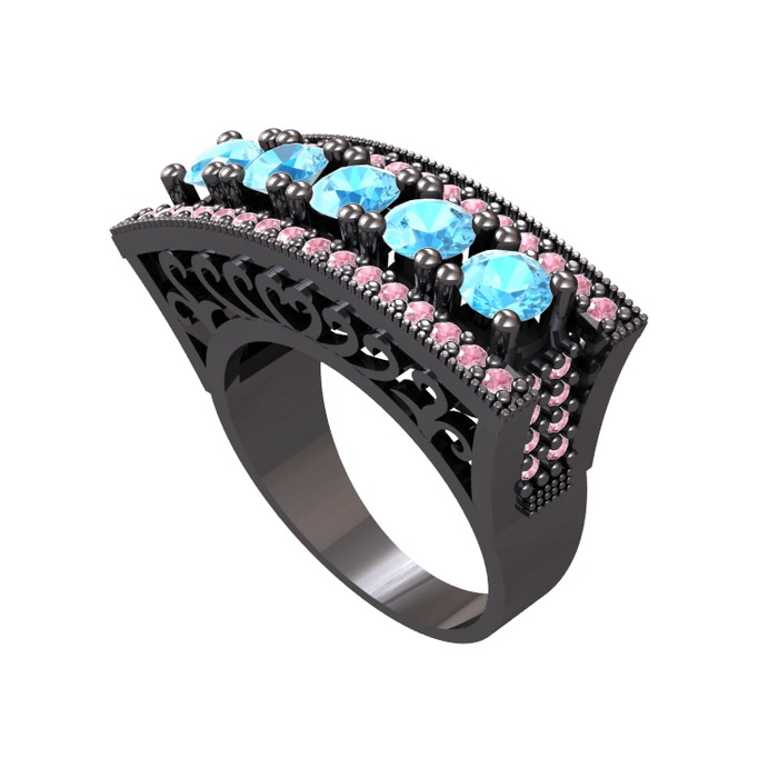 Akuamarin ve pembe kuvars 925 ayar siyah rodyum kaplama gümüş yüzük