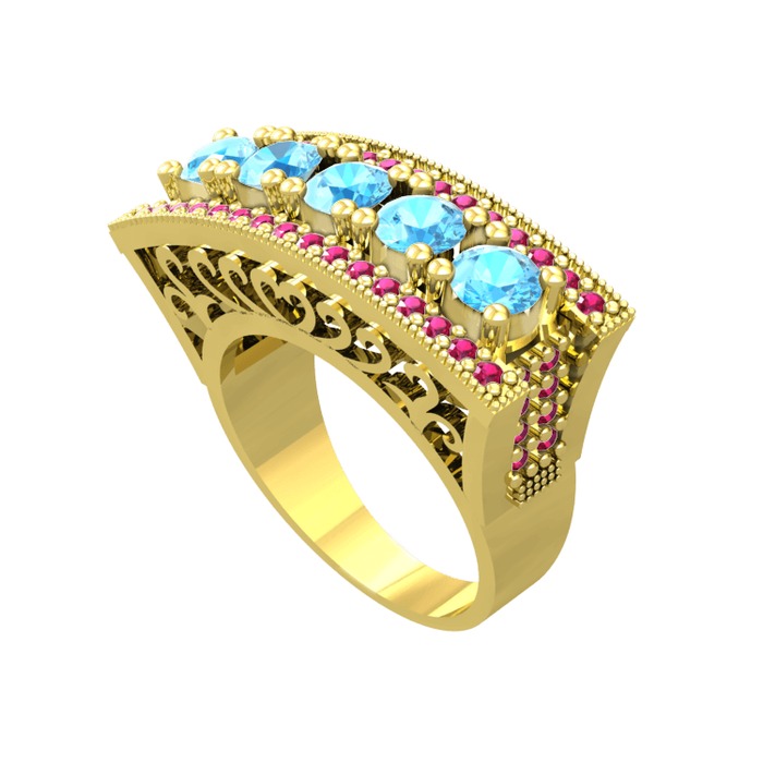Akuamarin ve rodolit garnet 18 ayar altın yüzük