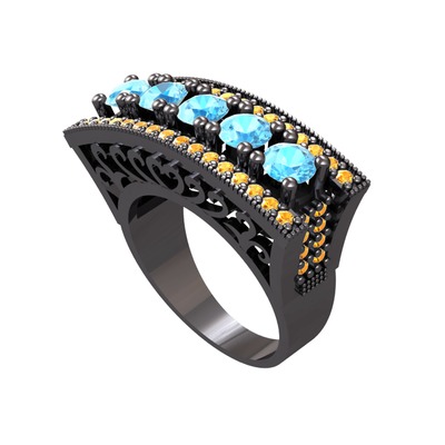 Akuamarin ve sitrin 925 ayar siyah rodyum kaplama gümüş yüzük