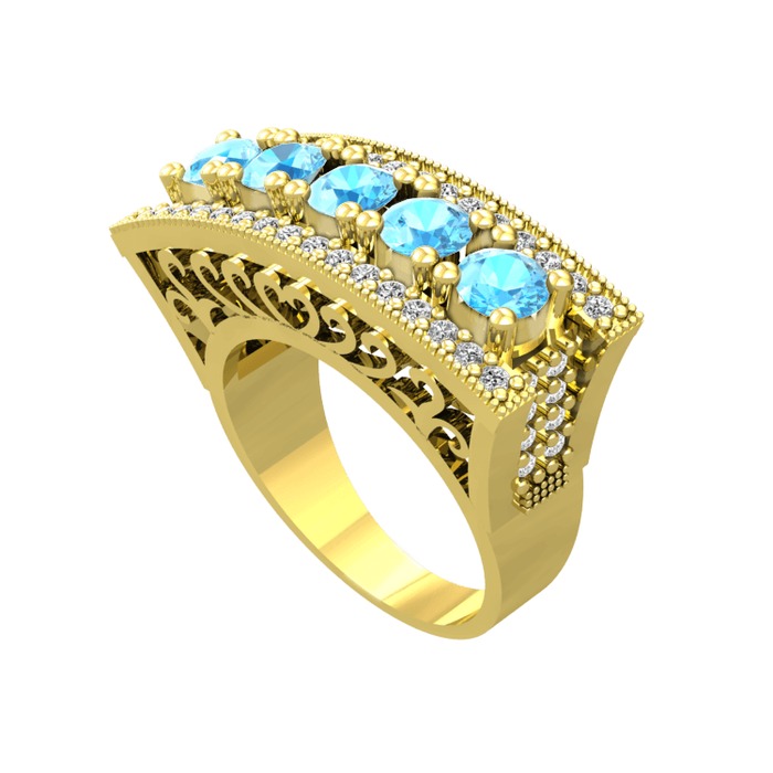 Akuamarin ve swarovski 925 ayar altın kaplama gümüş yüzük