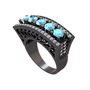 Akuamarin ve swarovski 925 ayar siyah rodyum kaplama gümüş yüzük