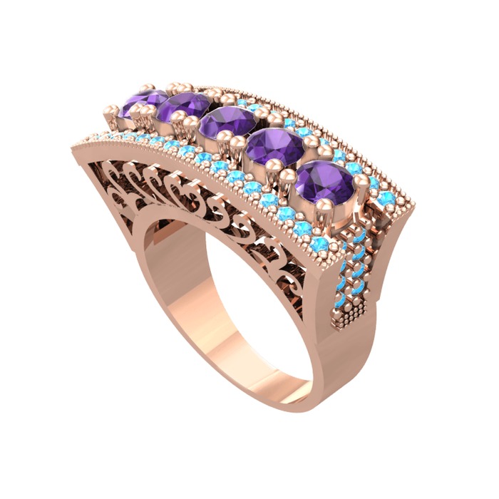 Ametist ve akuamarin 18 ayar rose altın yüzük