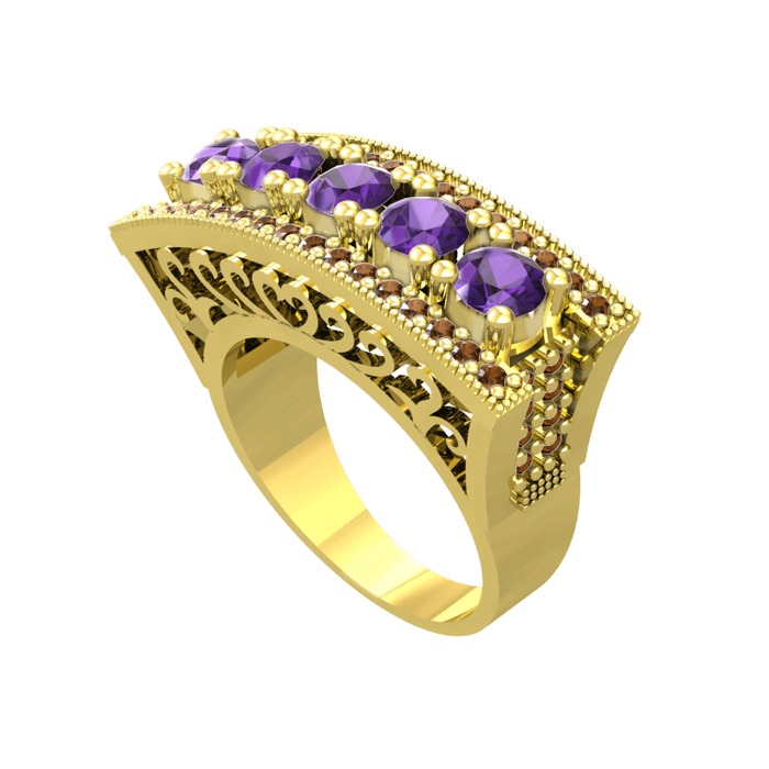Ametist ve dumanlı kuvars 14 ayar altın yüzük