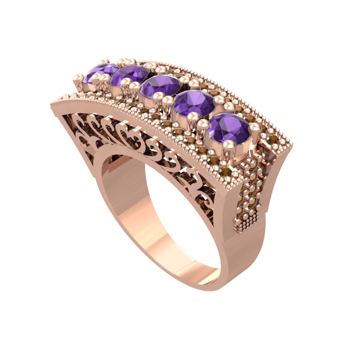 Ametist ve dumanlı kuvars 8 ayar rose altın yüzük