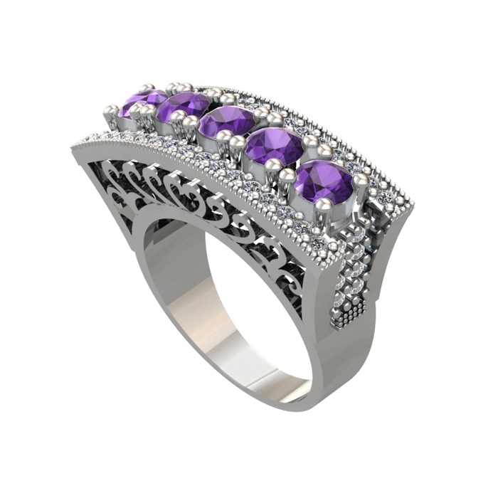 Ametist ve pırlanta 925 ayar gümüş yüzük (0.72 karat)