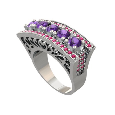 Ametist ve rodolit garnet 18 ayar beyaz altın yüzük