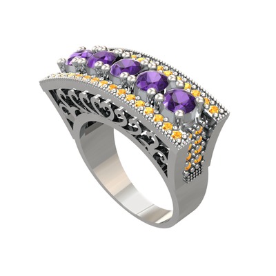 Ametist ve sitrin 8 ayar beyaz altın yüzük