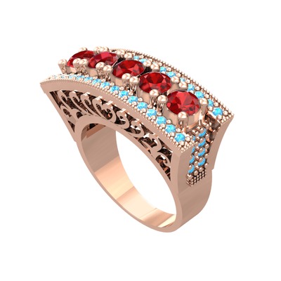 Garnet ve akuamarin 925 ayar rose altın kaplama gümüş yüzük