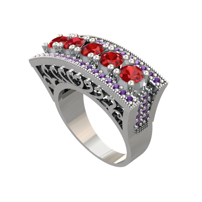 Garnet ve ametist 18 ayar beyaz altın yüzük