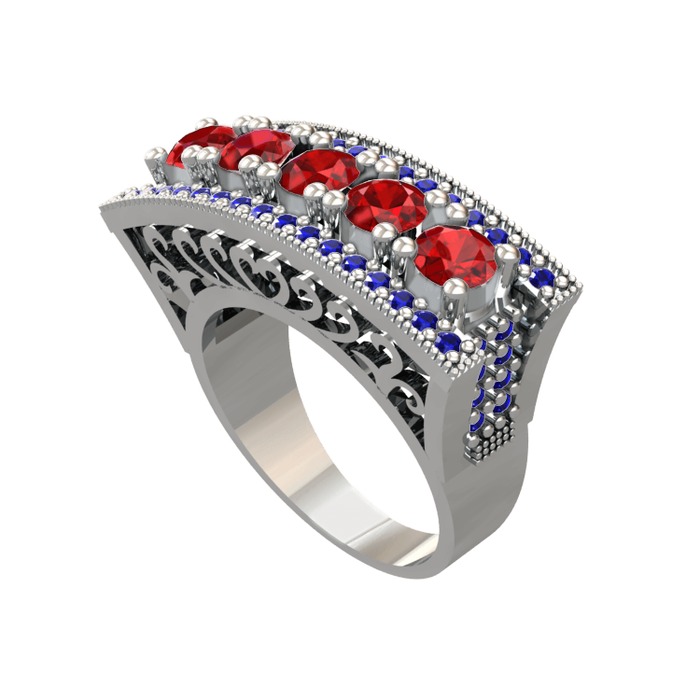 Garnet ve lab safir 8 ayar beyaz altın yüzük