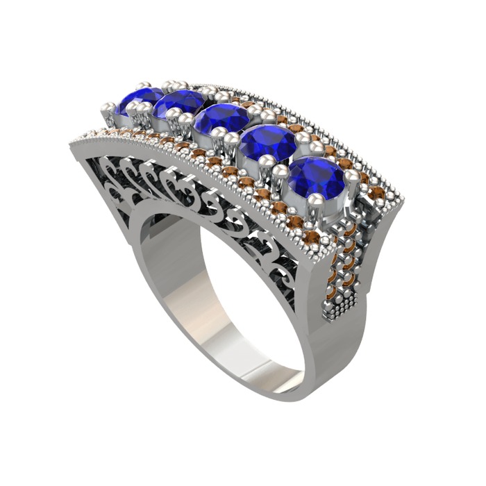 Lab safir ve dumanlı kuvars 14 ayar beyaz altın yüzük