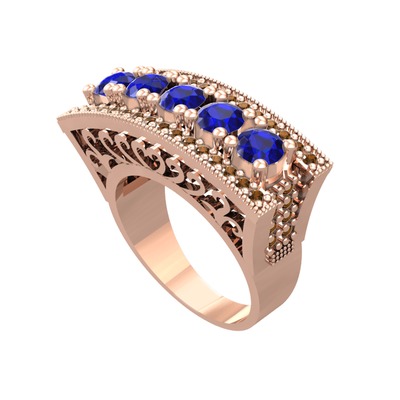 Lab safir ve dumanlı kuvars 14 ayar rose altın yüzük