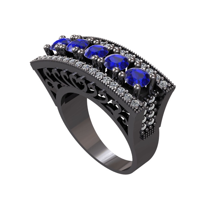 Lab safir ve pırlanta 925 ayar siyah rodyum kaplama gümüş yüzük (0.72 karat)