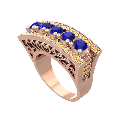 Lab safir ve sitrin 18 ayar rose altın yüzük