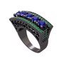 Lab safir ve yeşil kuvars 925 ayar siyah rodyum kaplama gümüş yüzük