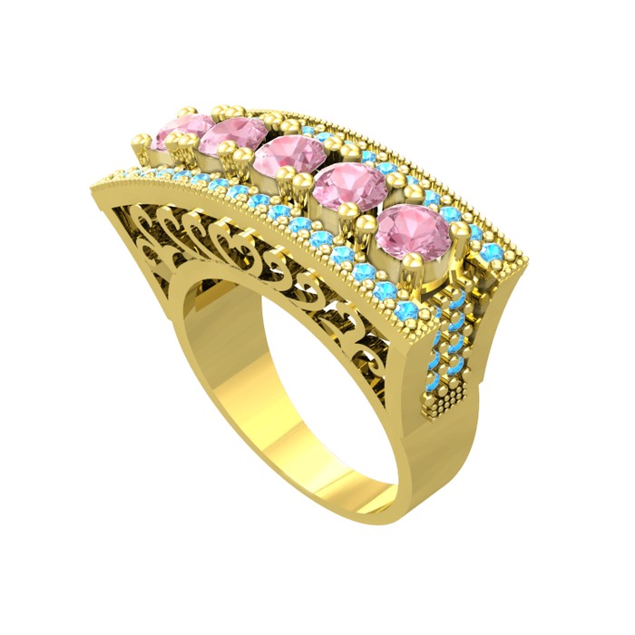 Pembe kuvars ve akuamarin 14 ayar altın yüzük