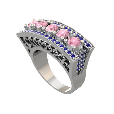 Pembe kuvars ve lab safir 18 ayar beyaz altın yüzük