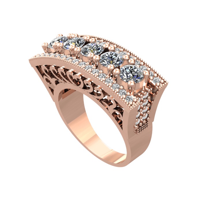 Pırlanta ve beyaz zirkon 8 ayar rose altın yüzük (1.75 karat)