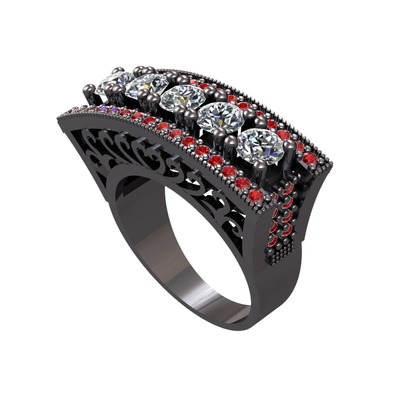 Pırlanta ve garnet 925 ayar siyah rodyum kaplama gümüş yüzük (1.75 karat)