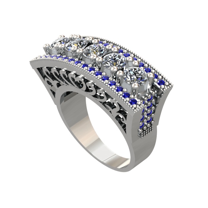 Pırlanta ve lab safir 8 ayar beyaz altın yüzük (1.75 karat)