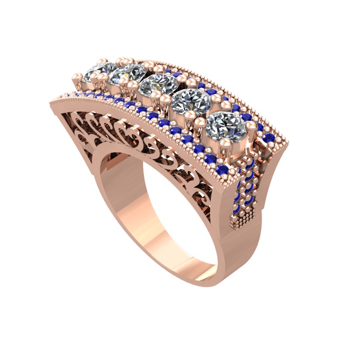 Pırlanta ve lab safir 925 ayar rose altın kaplama gümüş yüzük (1.75 karat)