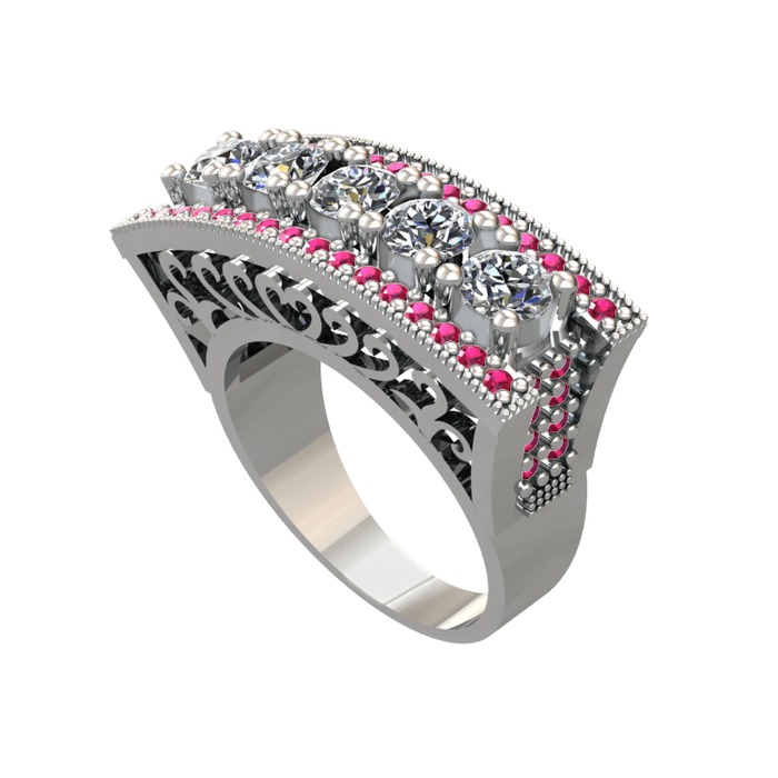 Pırlanta ve rodolit garnet 18 ayar beyaz altın yüzük (1.75 karat)
