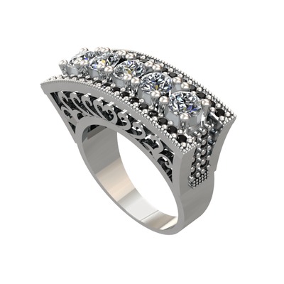 Pırlanta ve siyah zirkon 18 ayar beyaz altın yüzük (1.75 karat)