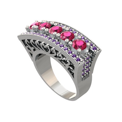 Rodolit garnet ve ametist 925 ayar gümüş yüzük