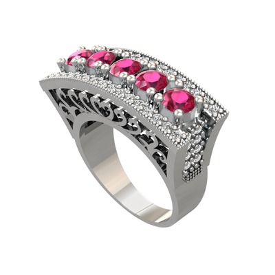 Rodolit garnet ve beyaz zirkon 8 ayar beyaz altın yüzük