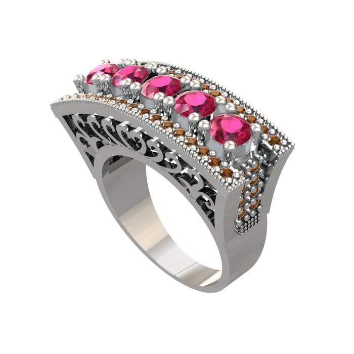 Rodolit garnet ve dumanlı kuvars 14 ayar beyaz altın yüzük