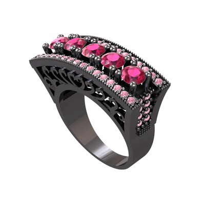 Rodolit garnet ve pembe kuvars 925 ayar siyah rodyum kaplama gümüş yüzük