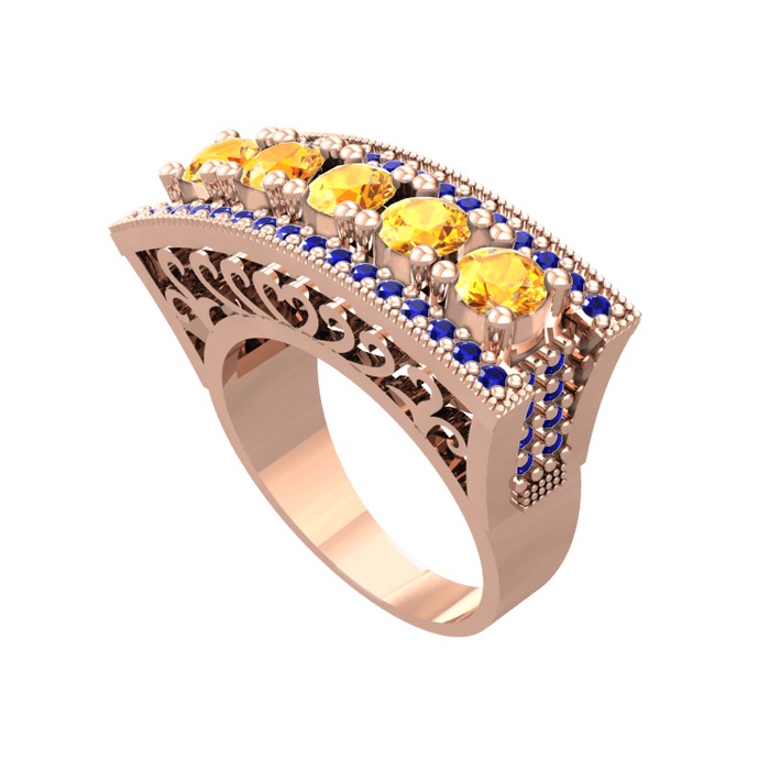 Sitrin ve lab safir 8 ayar rose altın yüzük
