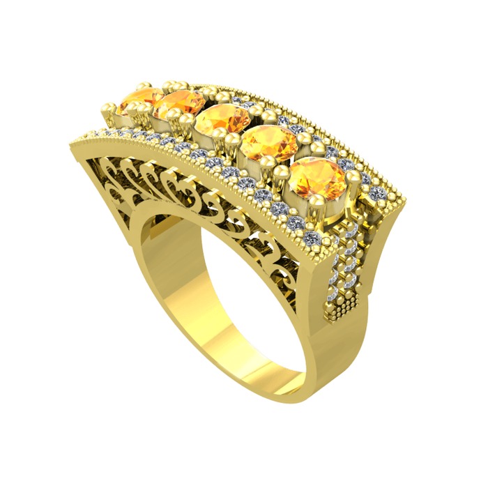 Sitrin ve pırlanta 14 ayar altın yüzük (0.72 karat)
