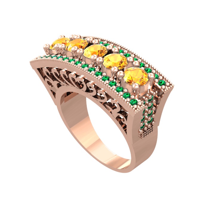 Sitrin ve yeşil kuvars 18 ayar rose altın yüzük