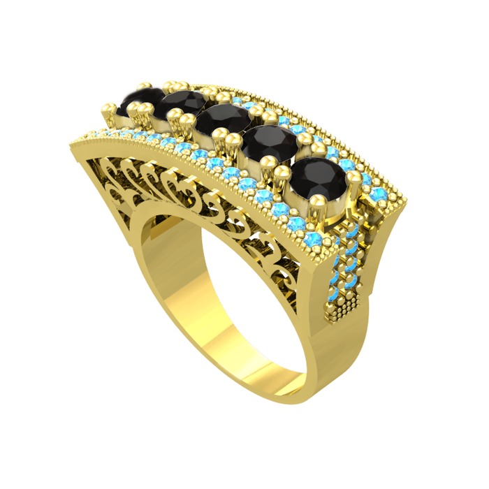 Siyah zirkon ve akuamarin 8 ayar altın yüzük