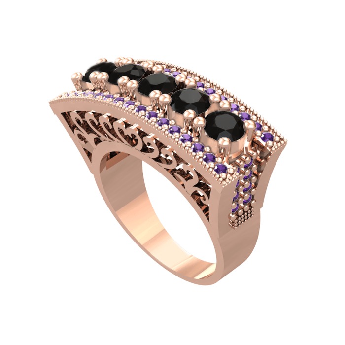 Siyah zirkon ve ametist 18 ayar rose altın yüzük