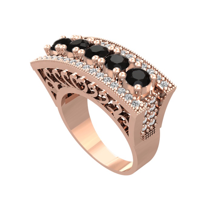 Siyah zirkon ve beyaz zirkon 14 ayar rose altın yüzük