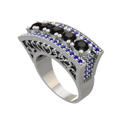 Siyah zirkon ve lab safir 8 ayar beyaz altın yüzük