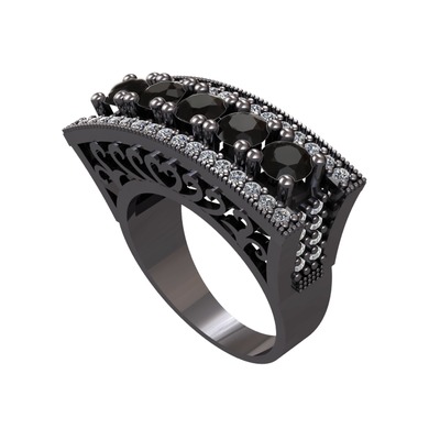 Siyah zirkon ve pırlanta 925 ayar siyah rodyum kaplama gümüş yüzük (0.72 karat)