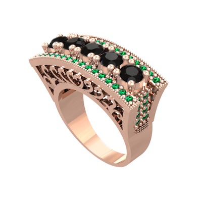 Siyah zirkon ve yeşil kuvars 8 ayar rose altın yüzük