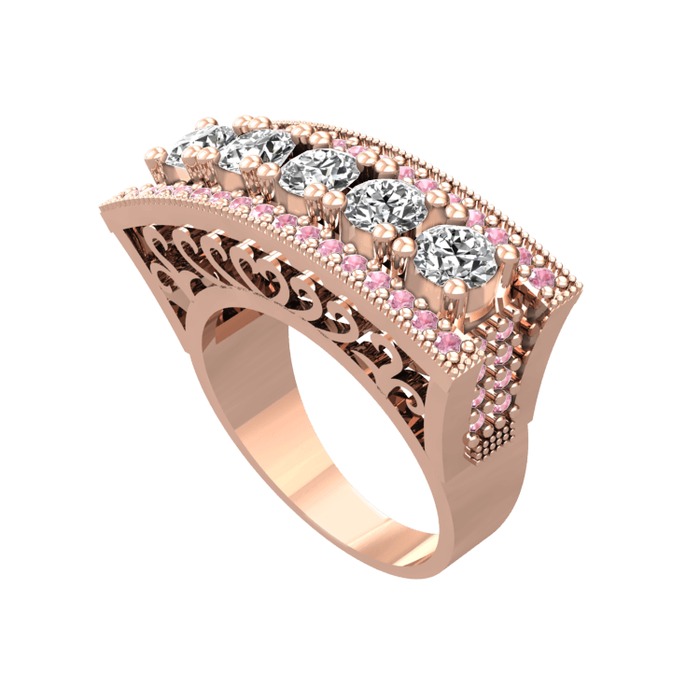 Swarovski ve pembe kuvars 925 ayar rose altın kaplama gümüş yüzük