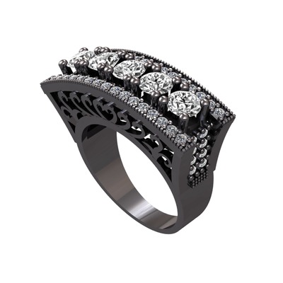 Swarovski ve pırlanta 925 ayar siyah rodyum kaplama gümüş yüzük (0.72 karat)