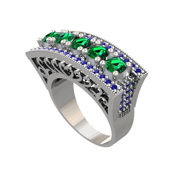Yeşil kuvars ve lab safir 14 ayar beyaz altın yüzük
