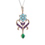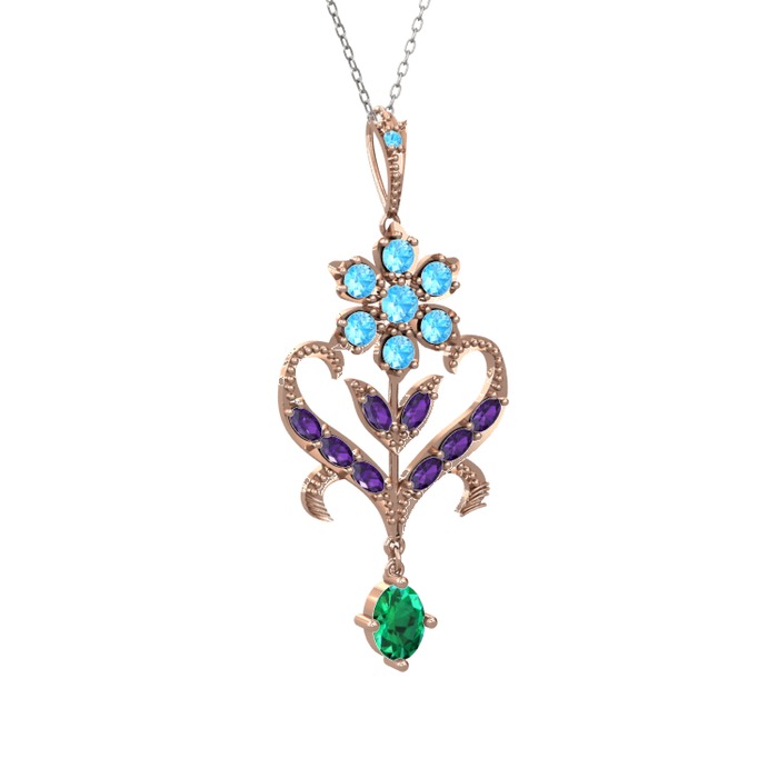 Akuamarin, ametist ve yeşil kuvars 14 ayar rose altın kolye (40 cm gümüş rolo zincir)