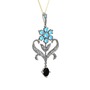 Akuamarin, beyaz zirkon ve siyah zirkon 14 ayar beyaz altın kolye (40 cm gümüş rolo zincir)