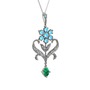 Akuamarin, beyaz zirkon ve yeşil kuvars 8 ayar beyaz altın kolye (40 cm beyaz altın rolo zincir)