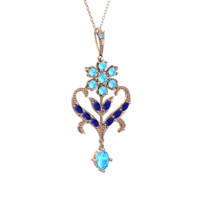Akuamarin ve lab safir 14 ayar rose altın kolye (40 cm gümüş rolo zincir)