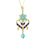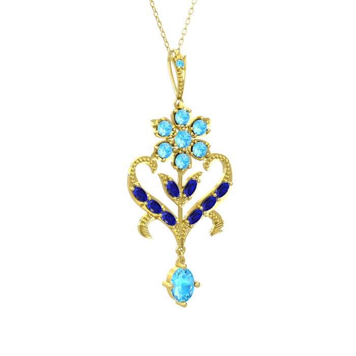 Akuamarin ve lab safir 8 ayar altın kolye (40 cm gümüş rolo zincir)
